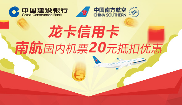 一、活动时间 2016年7月11日-2016年7月31日 二、活动对象 龙卡信用卡持卡人 三、活动内容 活动期间,龙卡信用卡持卡人可通过南航官网、app领取20元优惠券(每人最多可领取3张),优惠券可用于南航官网、app购买国内机票时进行现金抵扣。优惠券共计10万张,先到先得,抢完即止。